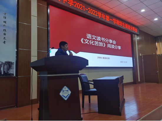 读书能启人心智,撼动心灵,丰富人生;读书能积淀学识,激动思考,指点迷津。为进一步落实新课标精神,丰富和提升学生阅读素养,进一步打造葛中书香校园,12月30日下午,我校以高二年级为阅读分享示范年级,举行了以“葛中‘悦’读,书香致远”为主题的阅读分享活动。副校长吴爱铭老师、副校长靳其春老师、高二年级主任陈福超老师、副主任罗彦彦老师、副主任周蓉老师及高二年级全体语文老师参与了此次活动。