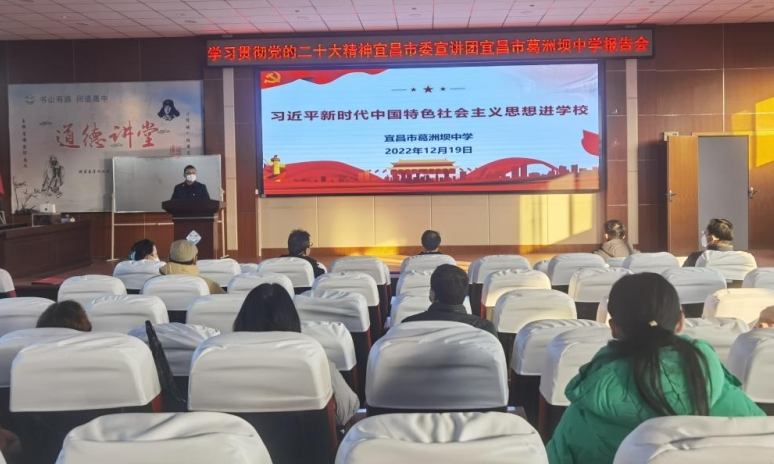 12月19日,学习贯彻党的二十大精神宜昌市委宣讲团宜昌市葛洲坝中学报告会举行,市委宣讲团成员、三峡大学马克思主义学院教授陈金明作宣讲报告。我校全体党员参会。