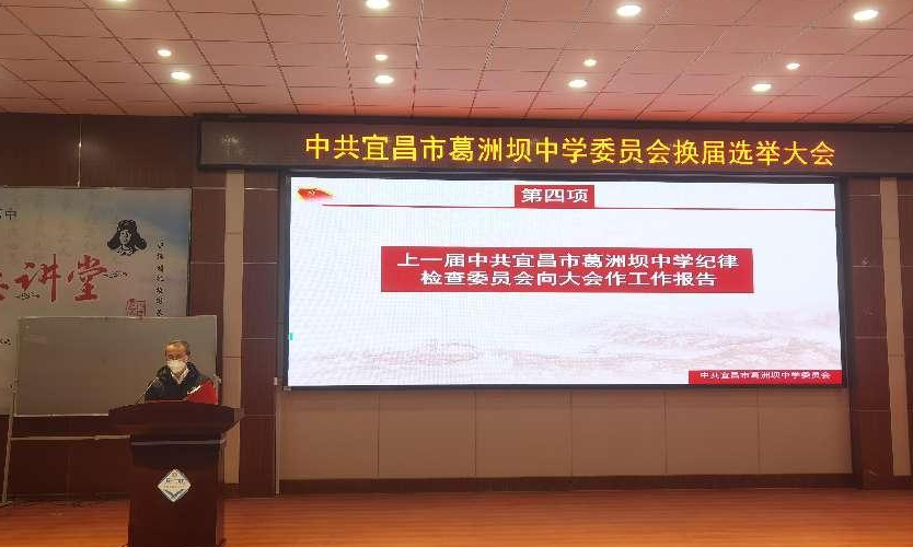 12月19日下午,伴随着庄严雄壮的国歌声,中共宜昌市葛洲坝中学委员会、纪律检查委员会换届选举党员大会隆重开幕。