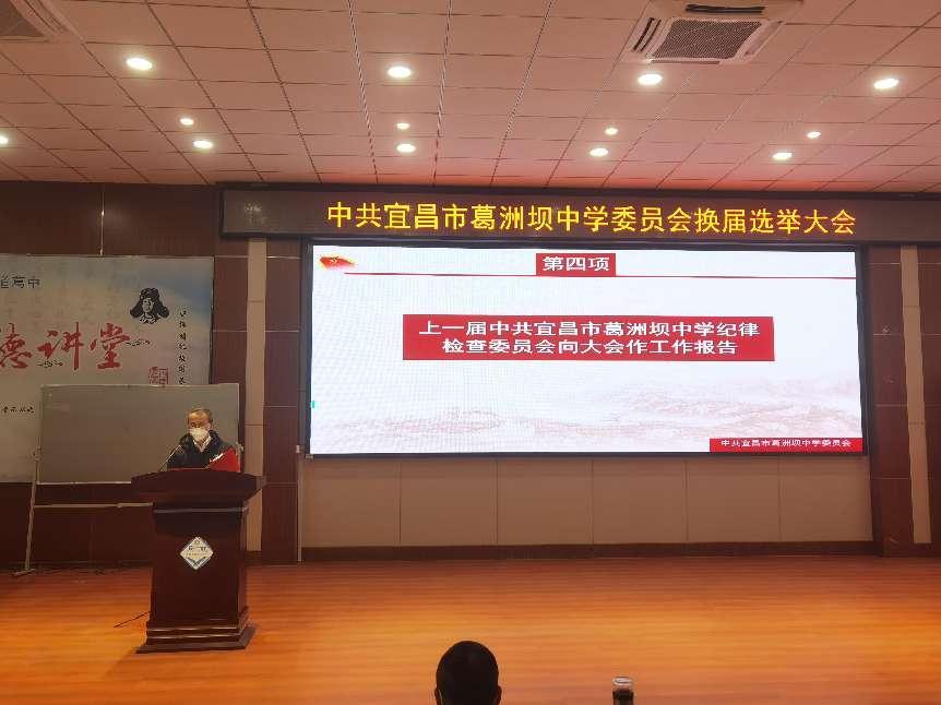纪委书记万青春同志代表上一届中共宜昌市葛洲坝中学纪律检查委员会向大会作工作报告