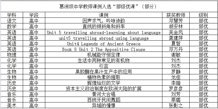 近日,从湖北省教育信息化发展中心得知,近五年来葛洲坝中学共19节课例获评为教育部“基础教育精品课”部级优课。这一统计结果,在全省学校中位列前十!