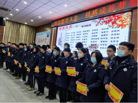 2020年12月22日下午,高一年级全体同学在高一年级组、班主任老师的组织下齐聚葛洲坝中学学术报告厅,参与高一年级12月月考表彰大会,大会上评选出这段时间里因学习认真、方法得当而取得优异成绩的同学,授予学习标兵和优秀学生的称号;对于一个月里吸取教训,成绩取得较大突破的同学,授予进步之星称号;对于学习刻苦、但仍有较大进步空间的同学,授予希望之星称号。伴随着激昂的进行曲,获得表彰的同学们沐浴在掌声中,接受来自年级各班班主任的颁奖,相关礼品也会在之后以班级为单位分发到每一位获奖同学手中。