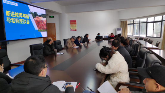 为进一步加强青年教师队伍建设,更深入了解新进教师入职以来遇到的问题和困惑,促进同伴之间的经验交流,宜昌市葛洲坝中学于2020年12月30日在办公楼会议室316开展了新入职教师和指导教师座谈会。谭子刚校长、田苹书记、吴爱铭副校长、教师处主任龚厚忠老师和郑军倩老师、教务处主任熊亚萍老师以及七位指导老师和七位新进教师参加了座谈会。