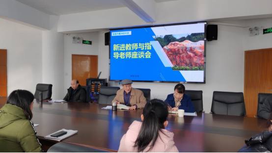 会议第一项,座谈会主持人龚厚忠主任代表学校对新进教师进校表现表达了肯定,并介绍了新进教师入校以来参加的各项培训,培训效果也在新进教师汇报课中有较好的呈现。