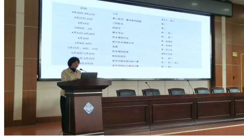 会议由教师处副主任郑军倩主持。大会第一项,教务处主任熊亚萍从课例研修、考务、科技节活动等方面,对前期教学工作进行了总结,总结中肯定了相关工作的完成情况,也指出了工作中存在的问题。最后熊主任对后期教务工作进行了详细安排。