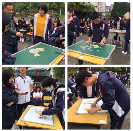 为增强同学们对地理学和地图的兴趣,熟悉中国分省行政区和世界主要地区的空间位置,培养地理空间思维能力,增强国家版图意识,葛洲坝中学特组织开展第四届“爱拼才会赢”地理拼图大赛,并于2021年4月23日,在学校升旗广场举行。到场活动的嘉宾有:副校长吴爱铭老师、教务处主任熊亚萍老师、教师处主任龚厚忠老师与副主任郑军倩老师、工会办公室主任宋海宁老师、高三年级副主任郑海森老师、高二年级班主任王宏飞老师、赵琼老师、郭巧梅老师、孙尉老师,地理组程红平老师、周雪老师、郭巧梅老师、雷玲老师,以及高二年级4个班级同学。比赛分为个人赛和团体赛两部分,各参赛选手和团队在比赛中进行激烈角逐,专业规范的操作流程,追求完美的品质标准,力求超越的速度等都是此次比赛的关键点。