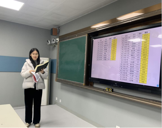 高三年级教学副主任张媛媛介绍了本次考试的整体情况,多数科目实际均分偏高,说明学生在这个月潜心学习、进步很大。通过各班前十名的各科排名、总分排名的对比分析,发现各班的目标生都有薄弱学科,相应学科的老师应该重点关注,班级合力促进学生梯队进步。后续班科分析会中老师们要仔细研讨下阶段人盯人计划及个性化辅导的情况。