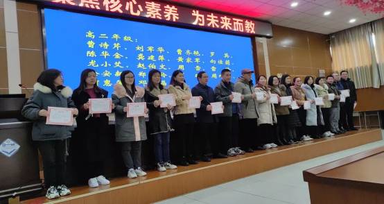 会议第一项是总结并颁发2021年秋季学期高二、高三年级“同课异构”授课证书。参与“同课异构”授课的教师团体中,骨干教师与青年教师共同努力,在课堂中磨炼功夫,在课堂外紧抓设计,奉献了一堂堂精彩的优质课,为学校教学发展作出了贡献。