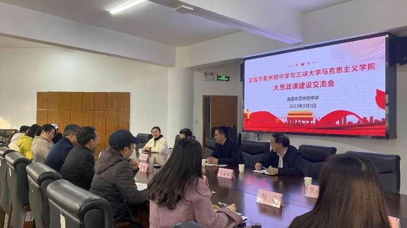 早春的寒风伴着暖阳,但却挡不住葛洲坝中学思政人研讨交流、谋划前行的脚步。3月2日上午,我校与三峡大学马克思主义学院大思政建设交流会在汇贤楼316如期举行。马克思主义学院副院长黎见春、学科思政方向硕士点负责人覃美洲、党政办主任鲍秀丽、教学办主任张永琦、学院教学办张莉老师以及我校吴益民校长、谭志鸿书记、吴爱铭副校长、团委代梦晗书记以及政治教研组全体教师参加了研讨会。