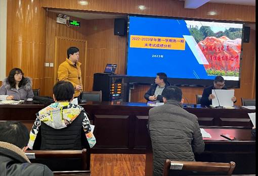 首先,教务处主任董浩就本次联考发言,分析了本次联考的基本情况,对上学期教学工作质量、工作实效以及存在的不足进行了说明。
