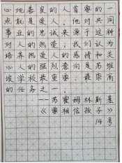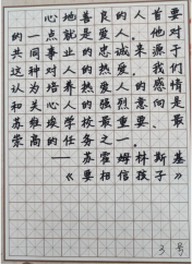 钢笔字书写比赛以苏霍姆林斯基的一段教育名言为书写内容。比赛中,青年老师们,满怀激情,用心书写每一笔、每一画,每一个汉字。