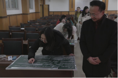 本次比赛分为粉笔字书写、钢笔字书写和教学板书设计三部分。