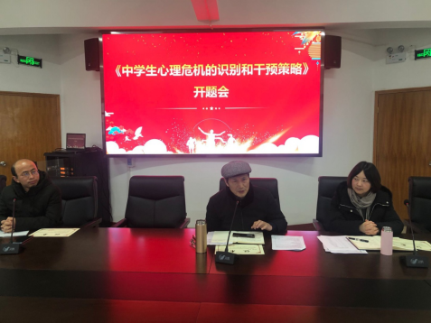 2020年1月8日上午,中国管理科学研究院素质教育研究所学生发展指导研究中心“十三五”教育科研规划重点课题的子课题《中学生心理危机的识别和干预策略》开题会议在我校办公楼316会议室举行。谭子刚校长、吴爱铭副校长、谭小红主席以及17名教师参加了此次会议,会议由学工处主任陈福超主任主持。