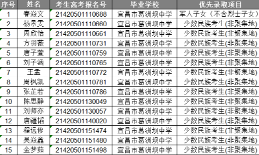 宜昌市葛洲坝中学2021年普通高校招生优录资格考生名单公示