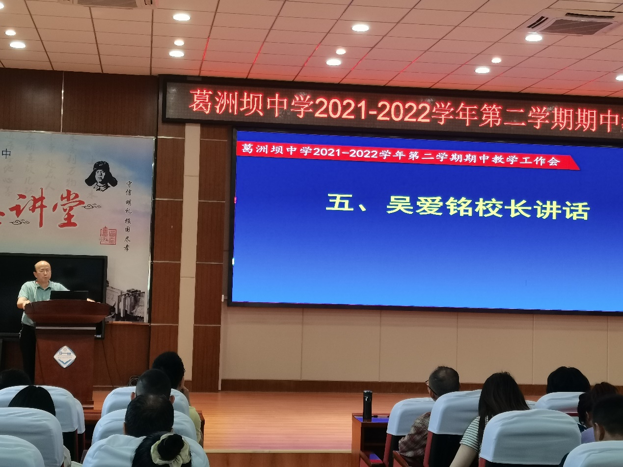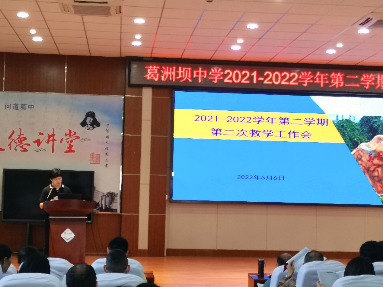 本学期第二次教学工作会于5月6日下午在学术报告厅举行,全体教职工参加。内容包括教务处工作报告、教师处工作报告、2021届高三教学质量表彰、“精准教·个性学”教学经验交流,最后由副校长吴爱铭同志讲话。