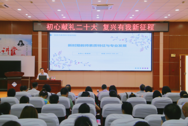 市教科院蒋葵林院长:作《新时期教师素质与发展》报告。