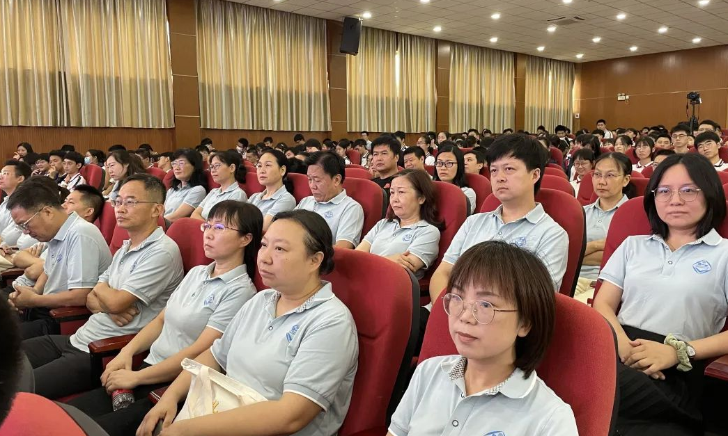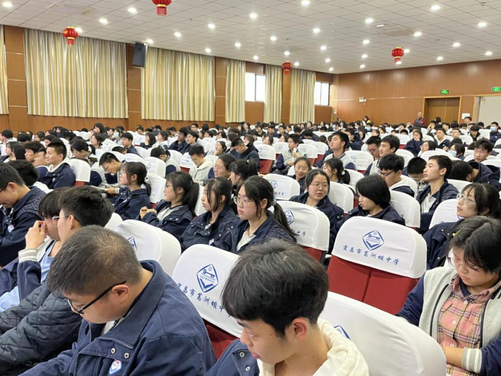 本次分享会由罗静老师主持,校长谭子刚、校党委书记田苹、副校长靳其春、副校长吴爱铭、副校长颜颉以及高一年级全体学生参与了此次分享会。