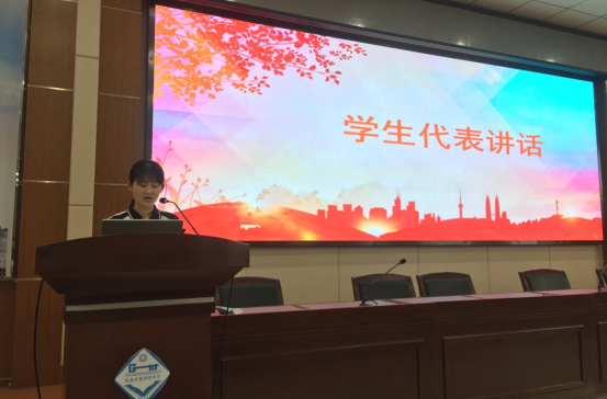 会议第二项,由高一四班优秀学生代表肖诗宇同学发言,肖诗宇同学以“志之所趋,无远弗届”为主题,分享了自己的学习心得,坚韧不拔之志感染着同学们。