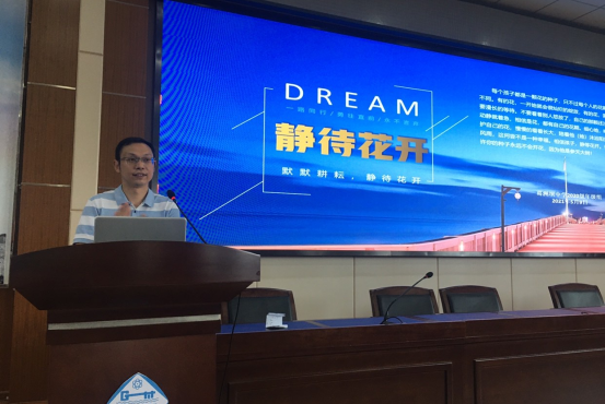 会议第三项,年级主任陈福超老师进行“默默耕耘,静待花开”主题演讲。陈主任从葛中生活展示、期中考试成绩分析、新高考方案解读、家校合作期盼四个方面进行讲解,强调家校合作需要信任、理解和沟通。