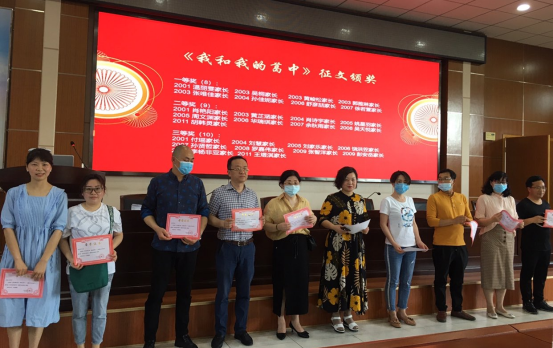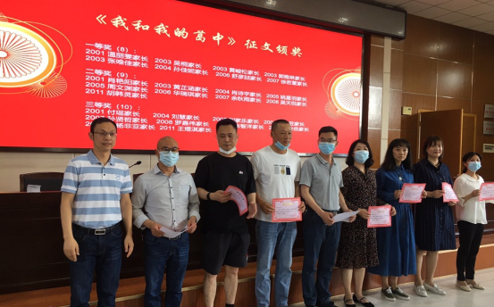 会议第二项,颁奖环节。为获奖同学家长颁发宜昌市葛洲坝中学举办的《我和我的葛中》征文比赛相关奖项。