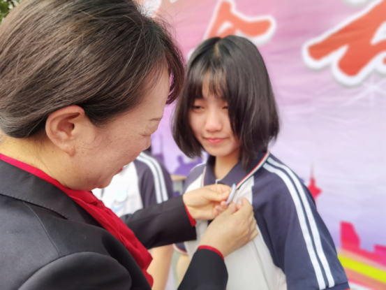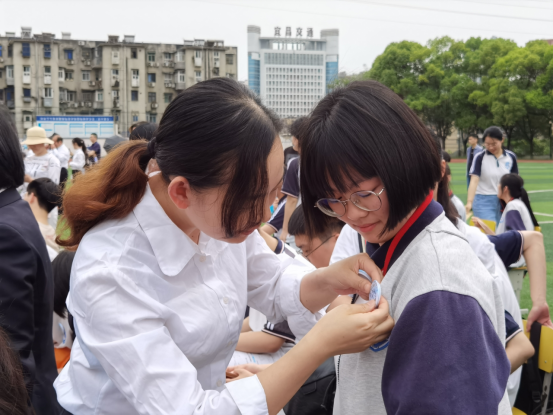 手拿宪法,心存青空;决战高考,超越梦想。为了纪念这一时刻,各班科任老师为学生佩戴象征责任与担当的徽章,希望学生能带着这份温情飞得更高。