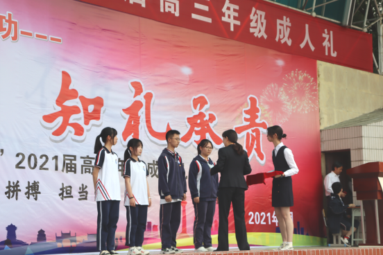2021年5月4日,宜昌市葛洲坝中学在学校大操场隆重举行“拿云壮志,知礼承责”高三学子成人仪式及毕业留影活动。学校以此为契机,鼓励高三学子抓住倒计时三十天,科学备考,全力以赴。