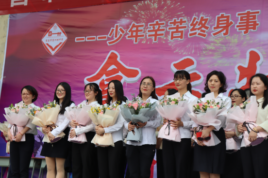 不是在最美的时光遇见了你们,而是因为你们,成就了我们最美好的时光。活动第三项,全体高三教师上台,同学们送上他们最真诚的感激和祝福。