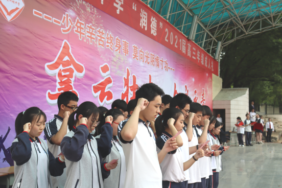 成人礼的最后一个环节,高三学子挥舞着班旗,用响亮的口号、整齐的步伐,跨越成人门、成器门、成才门。你们向着时代奔跑,时代也会因你们而精彩!成人快乐!