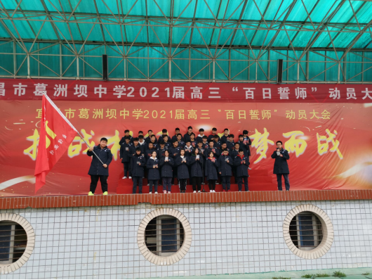 旗开得胜,扬帆起航。今天我们在这里,吹响一百天决战冲锋的号角,迎接人生的挑战。全体师生拧成一股绳,狠下一条心,共圆一个梦!