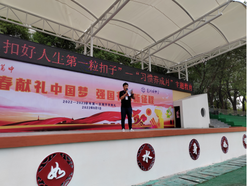 2022级新生入学教育系列报道(三)好习惯常相伴,行规矩助成长叶圣陶先生云:“最好的教育就是养成良好的习惯。”学校对于学生的习惯培养尤为重视,8月24日至8月30日是2022级新生的入学教育周,在军训紧张开展的同时,学工处组织了丰富多彩的入学教育活动。8月24日晚,伴随着军训开营仪式,学工处展开了习惯养成教育,学工处主任李克老师、副主任罗静老师、副主任向春玲老师分别就新学期仪容仪表、住校生管