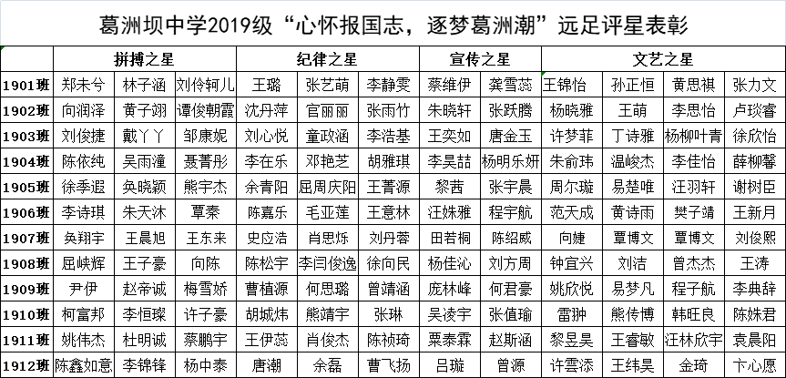 为加强学校德育工作,磨练学生意志,增强集体观念,2021年4月17日,高二年级举行了以“心怀报国志,逐梦葛中潮”为主题的第七届“润德”远足活动,并穿插了精彩的“欢歌新时代、颂歌献给党”红歌传唱活动,在活动中涌现了一大批表现优异的个人和班级。 红歌传唱活动一等奖: 208班、209班、212班、210班、211班、205班 红歌传唱活动二等奖: 201班、206班、203班、204班