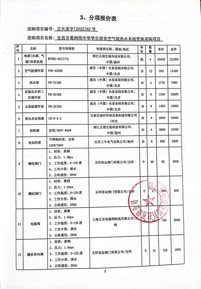 宜昌市葛洲坝中学学生宿舍空气能热水系统更换采购项目
