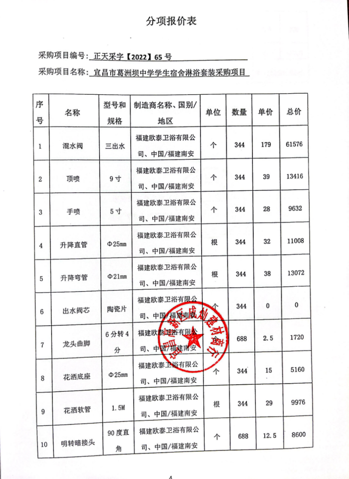 宜昌市葛洲坝中学学生宿舍淋浴套装采购项目