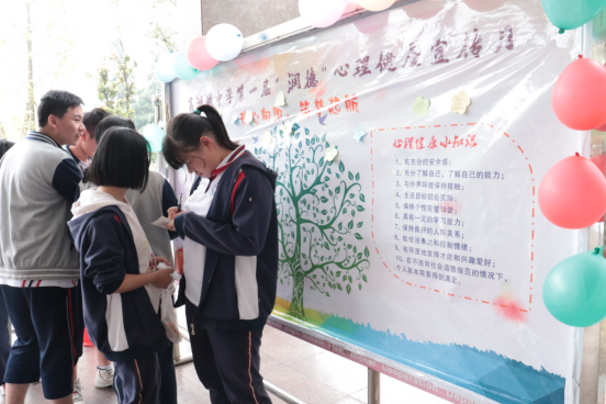 葛洲坝中学在教学楼大厅举办第一届“润德”心理健康宣传月开幕式,主题是“积极心态、润德成长”,旨在促进学生人格的健全发展,培养学生乐观、积极向上的心理品质。