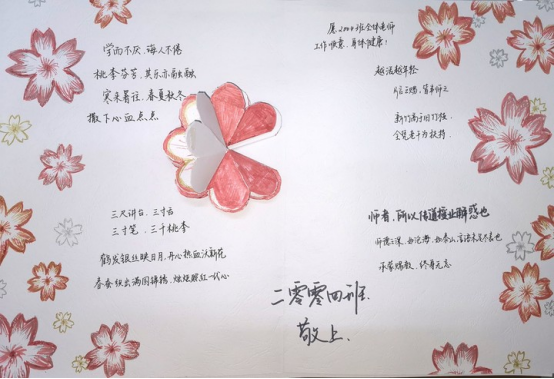 学校团委组织高一、高二各班学生制作手工贺卡送祝福和高三学生语音送祝福活动。各班级同学积极参与,发挥自己丰富的想象力和动手能力,将自己对教师的真情实感展示出来。