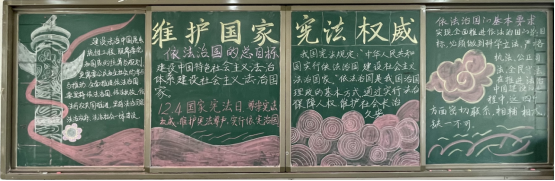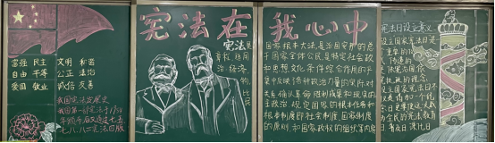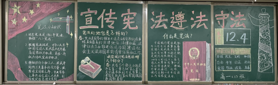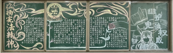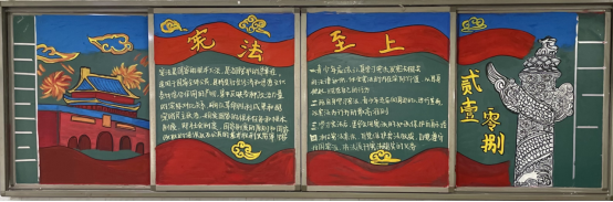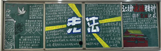 2021年12月4日是第八个国家宪法日。为弘扬宪法精神,维护宪法权威,加强法治教育,厚植爱国主义情怀,我校开展“以习近平法治思想为指引 坚定不移走中国特色社会主义法治道路”为主题的宪法宣传黑板报评比活动。同学们积极参与,精心设计,各班级都做出了设计新颖、图文并茂的精美板报。