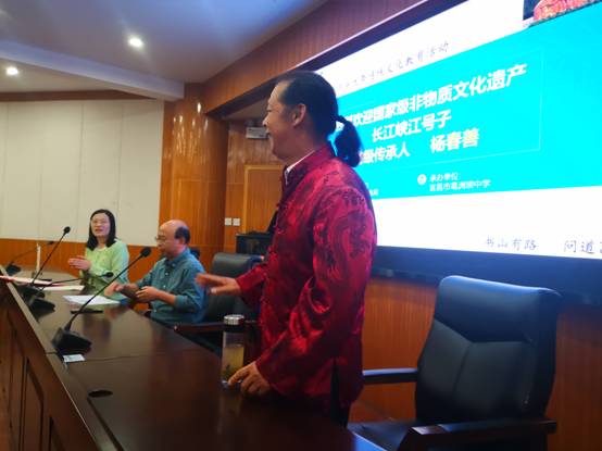 长江峡江号子是湖北省宜昌市的地方民歌,属于流传在滩多水急的长江三峡西陵峡一带行船过程中船工呼喊的号子,以及装卸、泊船时呼喊的码头号子和搬运号子。结合艾超鹏老师参加语文“素养课堂”活动,学工处积极融合开展中华优秀传统文化进校园,邀请杨老师为同学们带来微讲座《国家级非物质文化遗产—长江峡江号子》。会场上,杨老师倾情演绎,学生热情参与,吴校长精彩点评,整个活动让师生得到了一次极好的传统文化教育。杨老师也被聘请为我校“家乡文化进校园”长江峡江号子指导教师。