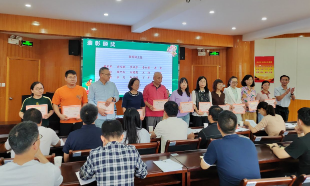 为落实立德树人根本任务,充实葛中“润德”育人品牌, 9月21日下午,全体班主任、德育导师代表及年级、处室管理干部共聚一堂,召开主题为“创新班级管理 争做幸福教师”的德育工作会,校长吴益民、党委书记谭志鸿、副校长吴爱铭出席会议,学工处副主任罗静主持会议。