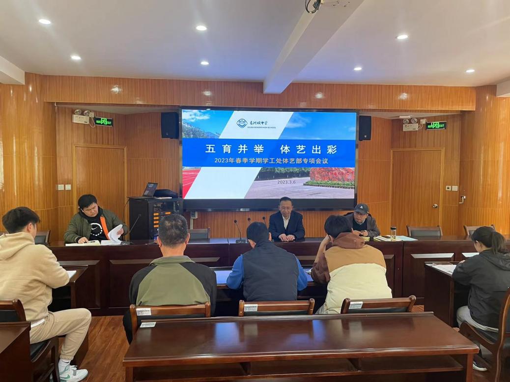 葛洲坝中学2023年春季学期学工处体艺部专项会议于3月6日上午9点在216会议室召开。会上,学工处主任李克布置新学期任务和工作实施要点,对体艺生的专项训练、校本课程、学科竞赛做了具体的布置和要求。