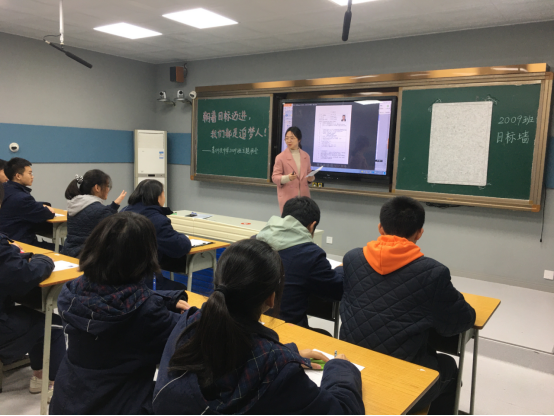 主题班会课是班主任对学生德育教育的主阵地,葛洲坝中学润德德育班会示范课正如火如荼地进行。12月2日,高二年级组推出209班曹齐艳老师的主题班会《朝着目标迈进,我们都是追梦人》,学工处组织全体班主任及青年教师参与观摩学习。209班多数学生为20级励志生,作为我校高二年级物化生类成绩最好的班级,大部分学生都处于年级前列,部分学生容易产生懈怠情绪或者盲目学习的心态,没有持久的内在学习动力,缺乏对目标认