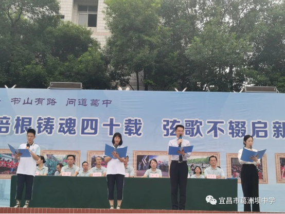 红色激情,歌声飞扬。10月28日晚上葛洲坝中学隆重举办了“培根铸魂四十载,启智润心育英才”建校40周年暨第十五届体艺节红歌合唱比赛。校长吴益民老师、党委书记田萍老师、副校长吴爱铭老师、副校长颜颉老师、工会主席李群老师与高一学子共同观看了此次合唱比赛。本次比赛的评委由高一年级主任胡安林老师、学工处主任李克老师、总务处主任祝国强老师、高一年级副主任喻愿霞老师、学工处副主任杨久白老师、张黎明老师、杨劼