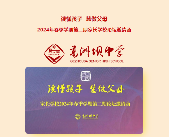 您好!感谢您一直以来对葛中家校工作的信任、理解与支持!为了进一步促进家校合作,形成教育合力,建立学校、学生、家长三位一体的发展共同体,我校即将组织一场以“读懂孩子,慧做父母”为主题的家长团辅活动。