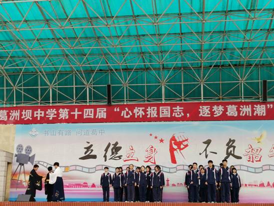 9月28日下午葛洲坝中学高二年级“心怀报国志、逐梦葛洲潮”主题诗会大赛在田径场隆重举行。