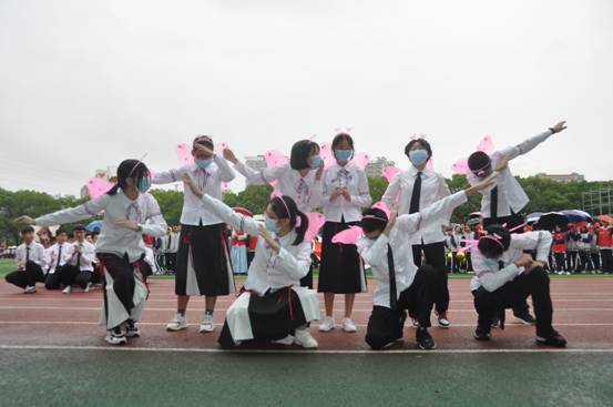 伴随着慷慨激昂的口号、整齐划一的队形,在国旗方阵的带领下,彩旗方阵、气球方阵及36个班级方阵依次登场,接受全体师生的共同检阅。各代表队英姿飒爽,斗志昂扬,步伐铿锵有力,口号响彻云霄。在各班精心准备下,开幕式一分钟班级特色展示如百花齐放,青春靓丽的衣饰装扮、优雅曼妙的舞姿、独具创意的队列变化,充分体现了葛中学子奋发向上的精神风貌!舞动,是他们心中的热情在释放;欢乐,是他们心中的阳光在播撒。运动场上的表演方队以特有的活力与魅力展示了葛中学子的朝气蓬勃!
