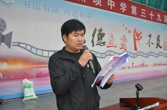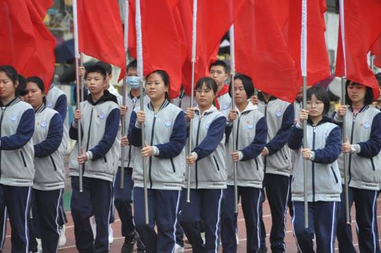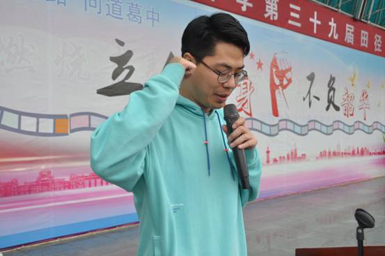 入场式结束后,全体奏唱庄严国歌。随后,副校长靳其春老师致开幕词,他希望同学们发扬阳光体育精神,展示我校学子的健康雄健的体魄,培养顽强拼搏的意志,不畏挫折,增强健康理念,养成运动习惯!接下来,由学工处李克老师宣读“体育道德风尚奖”评选办法,学工处副主任杨久白老师宣布大会纪律。