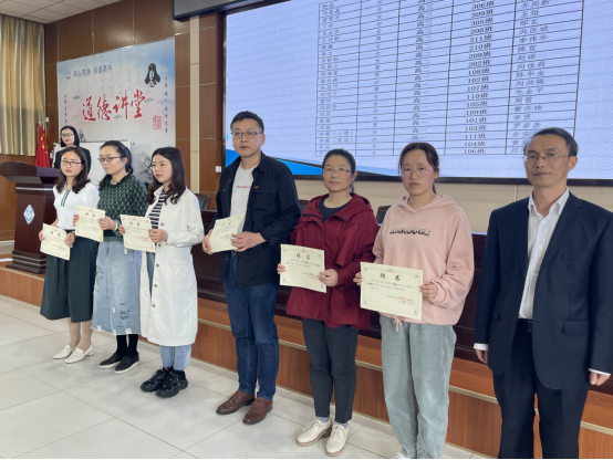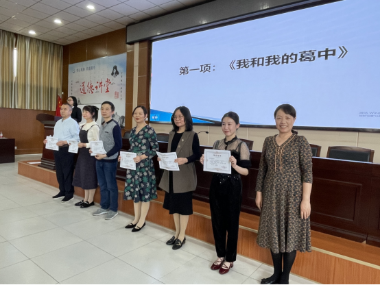 冰心老人说:“教师的现在,就是学生的将来”,在葛中总有那么一群人,迎着晨曦陪伴学生晨读,夜幕四合仍坚持下班辅导,无怨无悔,本次德育工作会在微电影《我和我的葛中》中拉开序幕,该微电影描述了我校罗彦彦、周厚军、齐同新三位老师,不忘初心,守护葛中热土。在庆祝中国共产党成立100周年之际,在市直教育系统“人民在我心中”故事汇展演活动中,《我和我的葛中》形式新颖、故事感人、表演真挚,荣获一等奖。在此次会议上,对罗彦彦、周厚军、齐同新、毛群、代梦涵、蔡璐及党办主任周晓莉等老师进行了表彰!