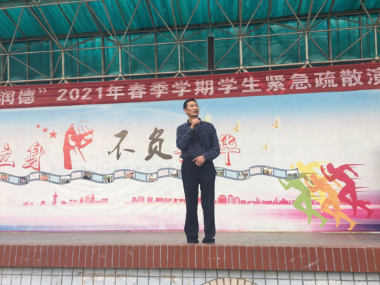 最后谭校长做了总结讲话,他期望同学们能通过这次演练,学习和掌握逃生自救知识,熟悉逃生疏散路线,增强安全自救意识。只有从思想上高度重视每次的演练活动,在真正灾难来临时才能远离伤害,自由幸福地生长。