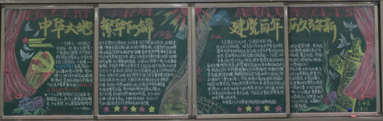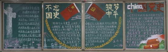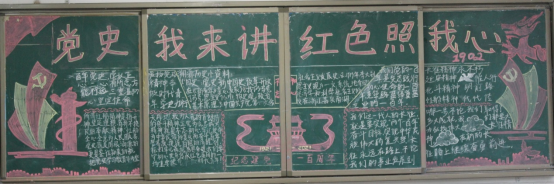 为热烈庆祝中国共产党成立100周年,深入学习贯彻习近平新时代中国特色社会主义思想,葛洲坝中学积极开展“从小学党史 永远跟党走”主题教育活动,校团委于2021年5月组织高一、高二学生开展“党史我来讲,红色照我心”主题黑板报教育活动。