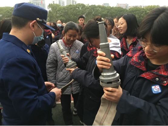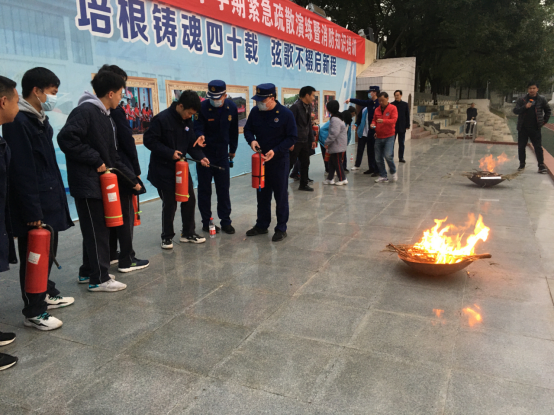 在操场上集中后,张队长对此次演练进行评价,同时对全体同学进行消防相关知识培训,张队长围绕灭火器的正确使用、水带水枪的构造、烟气的危害及紧急状态下的逃生方式,用一个个生动而又严肃的案例向同学们进行说明,同学们认真倾听。