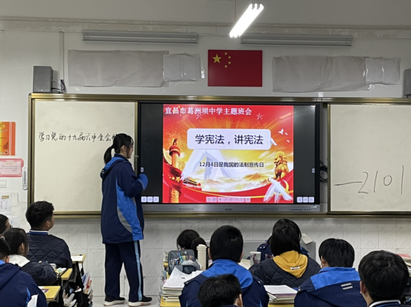 今年12.4日,将迎来我国的第八个国家宪法日。12月3日教育部开展国家宪法日“宪法晨读”活动,葛洲坝中学被设为教育部“宪法晨读活动”宜昌市分会场,12月3日上午9点,市教育局领导莅临我校和学生一起观看“宪法晨读”直播课。